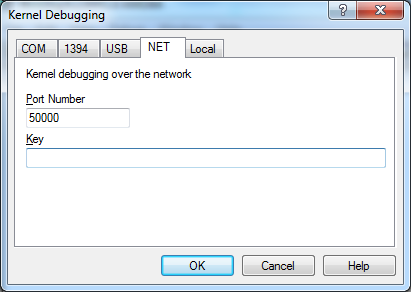 Start WinDbg, and enable network kernel debugging, entering the port number and security key.