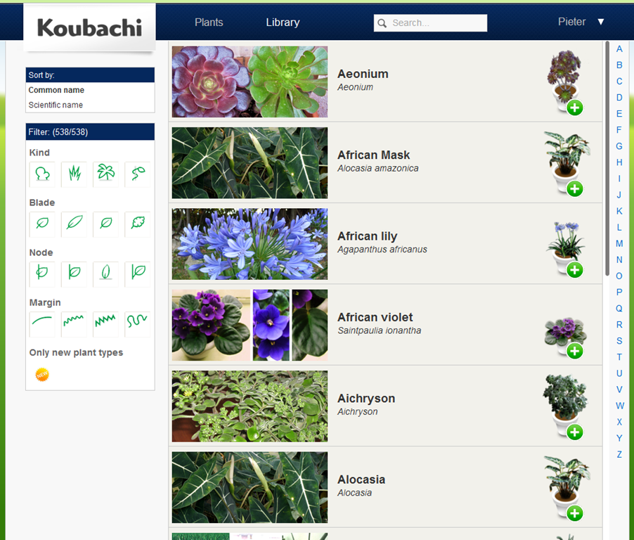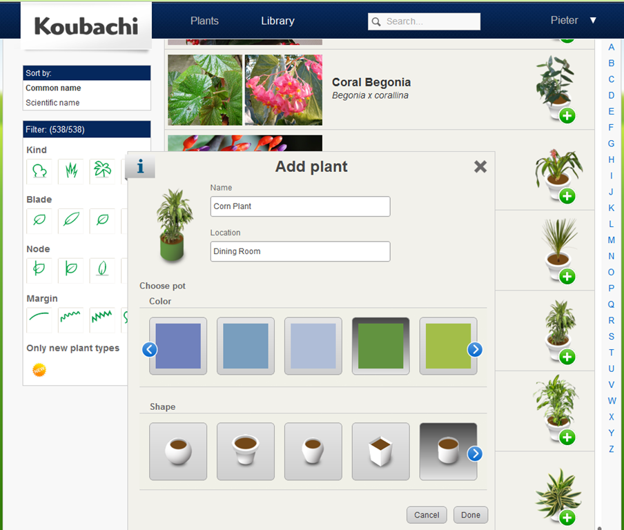 After adding the plant to the canvas, you select the type of plant and pot from the online database. Only 538 types seems a bit limited, but my corn plant was easy enough to find.