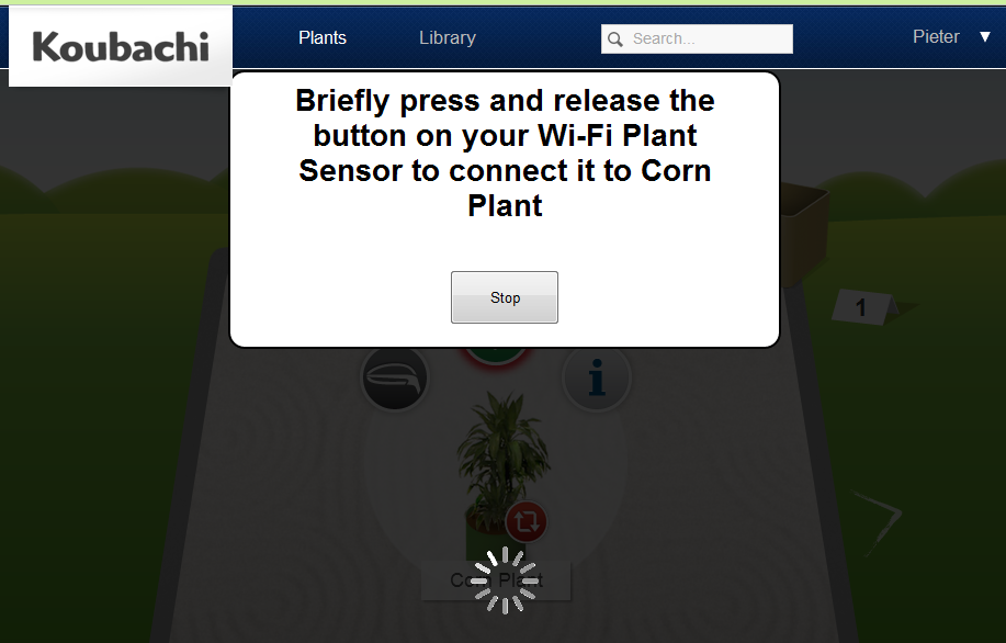 At this point everything appeared to be setup and working, except the “To my plants” button was not working. On clicking the “Plants” link, I got to a screen where I can add my first plant, but nothing happened when I clicked on or dragged the pot icon. I tried using Chrome and Internet Explorer, same thing.