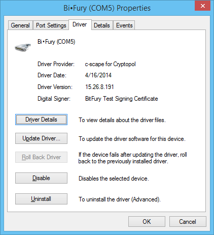 If you just want signed drivers, get a copy of self-signed “Bitfury BF1” and “bi•fury” drivers here.