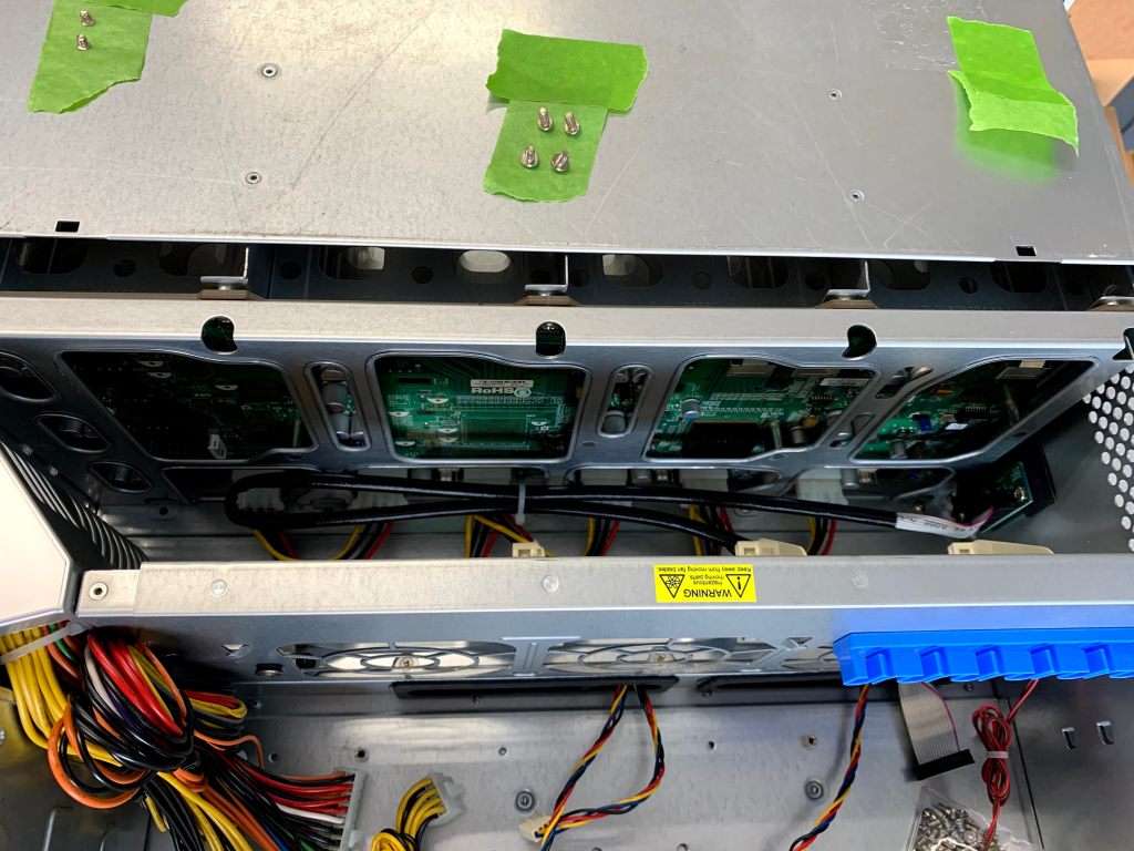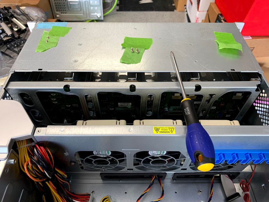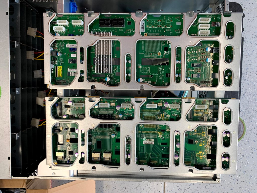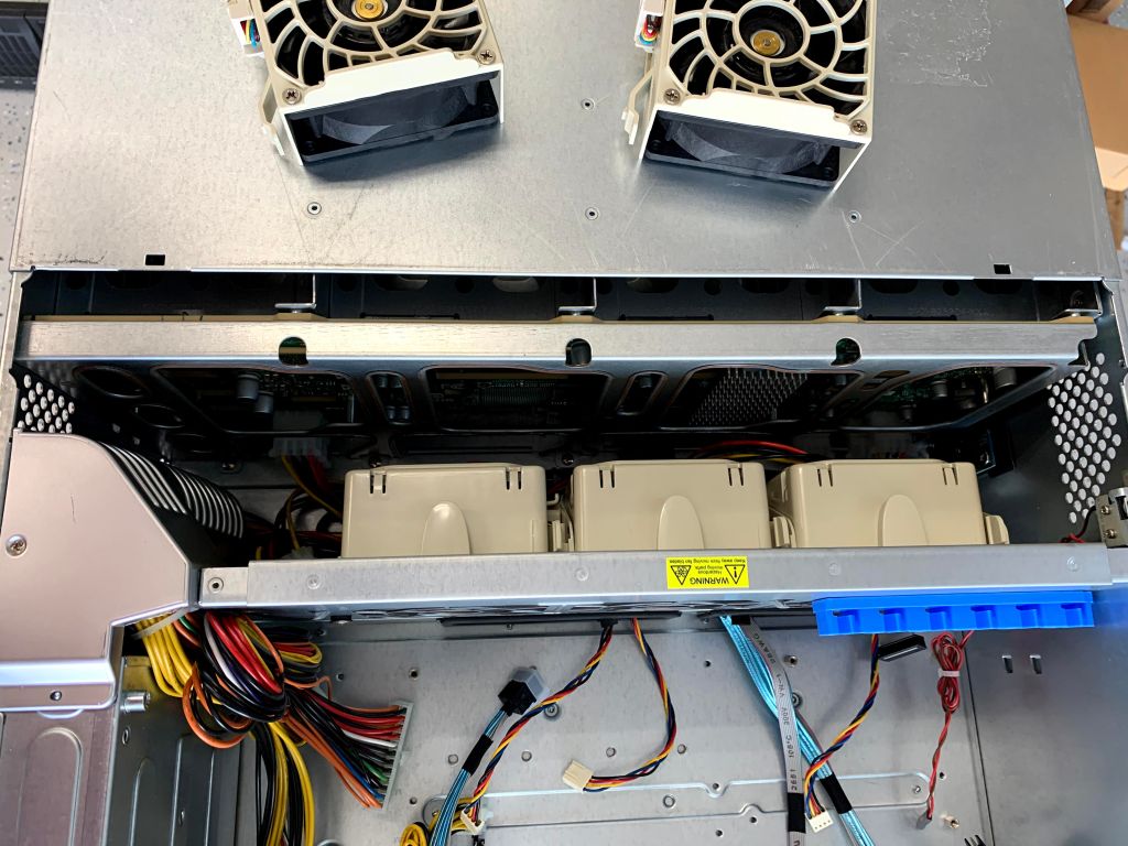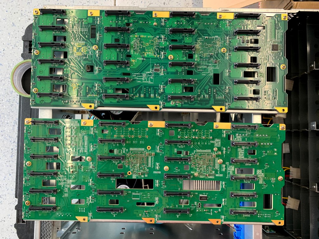 Since I now had SAS3 HBA’s in both my servers, I really wanted to get SAS3 backplanes, but I did not want to pay SAS3 chassis prices. I found a refurbished SuperChassis 846E16-R1200B chassis and two refurbished Supermicro BPN-SAS3-846EL1 backplanes on eBay. The one SAS3 backplane would replace the SAS2 backplane in my existing SC846, and the second SAS3 backplane would replace the SAS2 backplane in the newly purchased SC846. The combination of the 24 bay 4U chassis with a SAS2 backplane and a replacement SAS3 backplane is much cheaper compared to any native SAS3 chassis I could find.