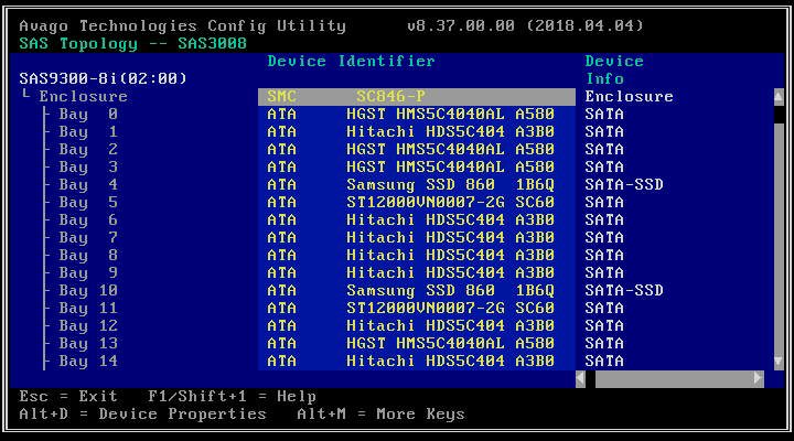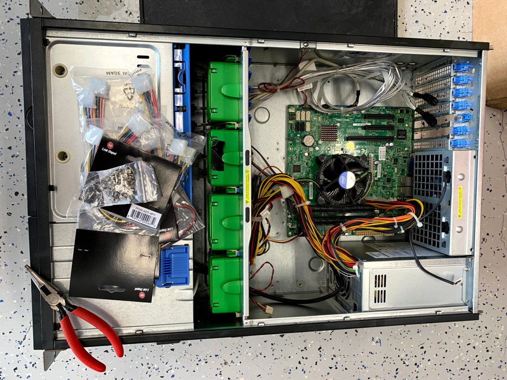In a previous adventure I replaced an Adaptec HBA with a LSI SAS3 HBA, and the chassis drive bay LED’s stopped working. I suspect the LSI card does not play nice with the SGPIO sideband controller, and I decided to replace the chassis with one similar to my SC846 chassis, where the LSI card and drive bay LED’s do work fine.