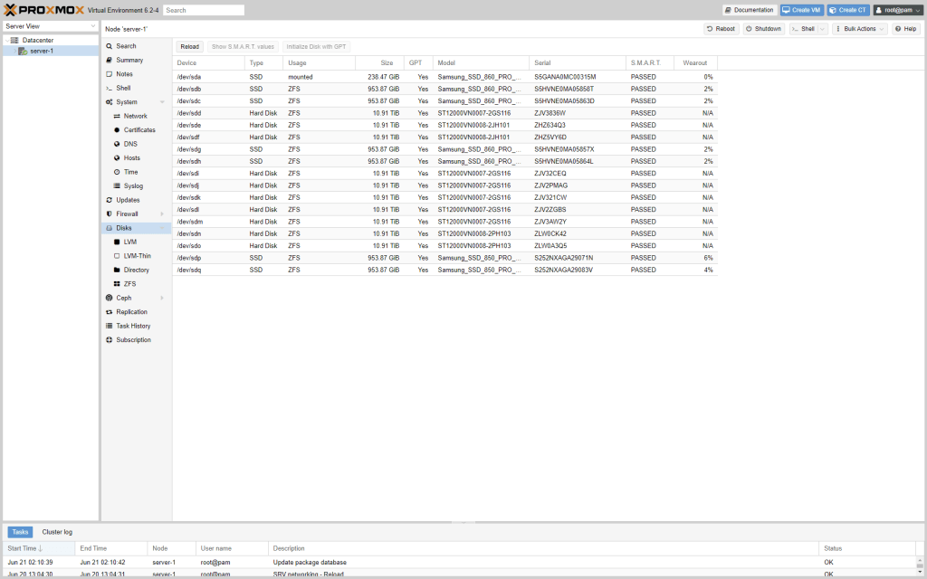 Nice thorough article I’ll be referring back to at some point when things go wrong. I like the fact you’ve included solutions to problems you had and reasons for decisions. I’m in the process of design at the mo… evaluating best approach for a video editing setup for myself, wife and intern/apprentice. Proxmox looks most likely choice as it allows me to put ZFS on in different pools (fastEdit SSDs mirrored, vs slower big HDD RaidZ for raw material and archived final content, and a 3rd for important docs in smaller block sizes). Plus have a VM for remote rendering with da Vinci resolve.