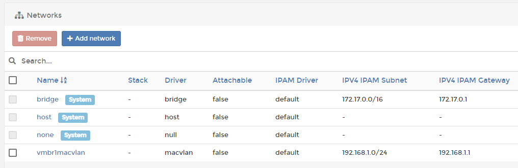 docker network create --driver macvlan --subnet=192.168.1.0/24 --gateway=192.168.1.1 --opt parent=vmbr1 vmbr1macvlan
