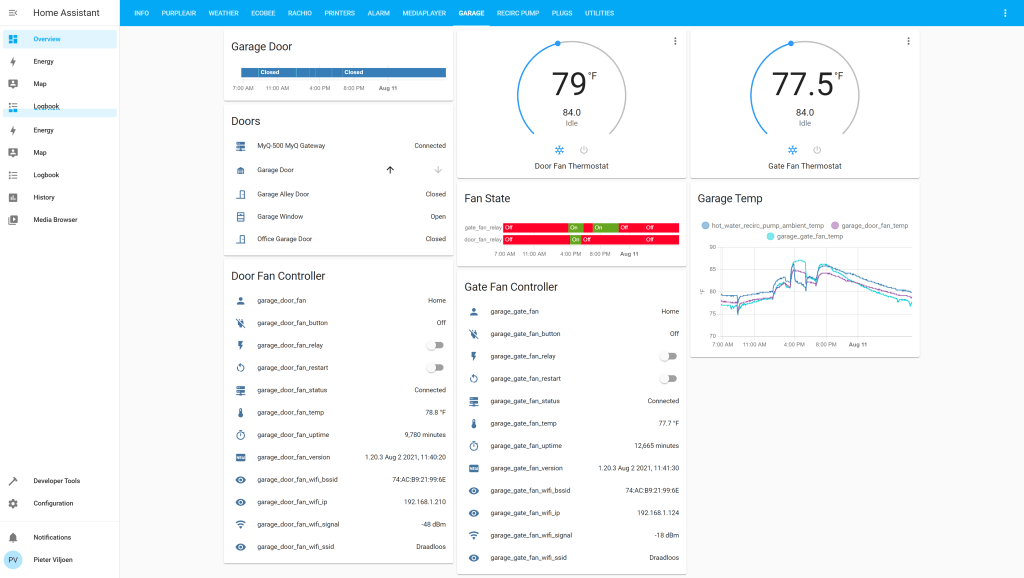My Home Assistant view of my garage sensors: