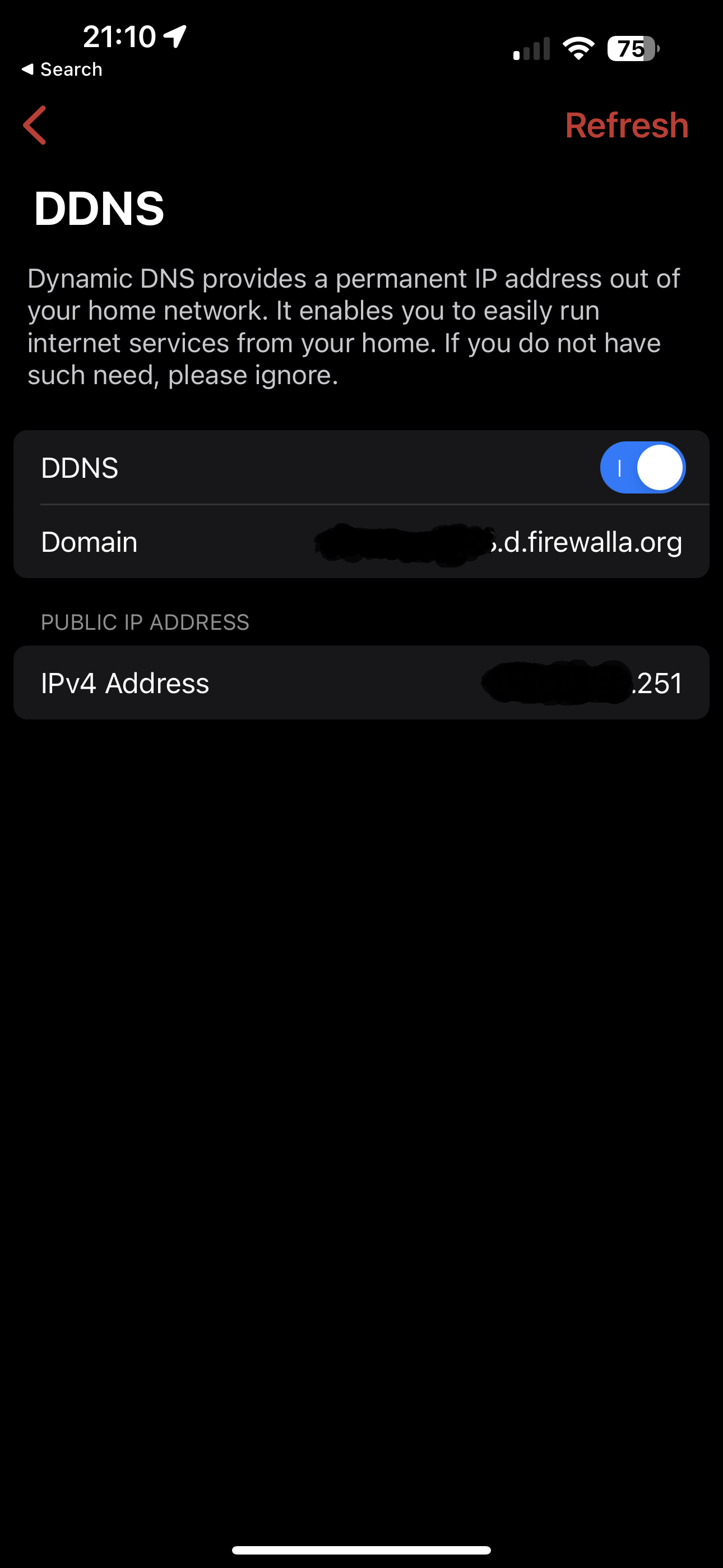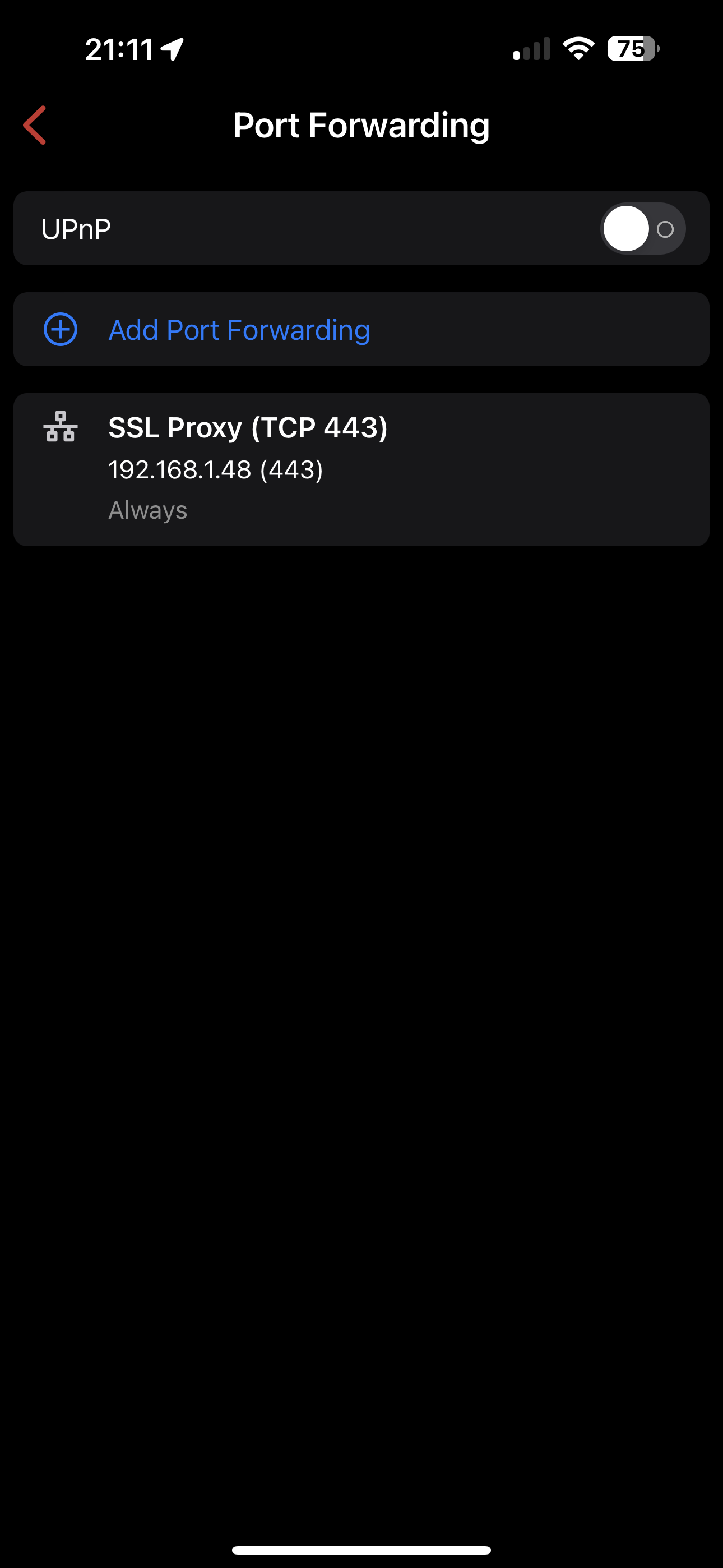 With the USG I updated my dynamic DNS IP using DNS-O-Matic, that in turn changed a CloudFlare A record. Firewalla provides built in dynamic DNS support, and I simplified my public DNS configuration by changing from an A record to a CNAME pointing to xxx.d.firewalla.org. Port forwarding is configured under the NAT settings, and I just need SSL forwarded to my Taefik proxy that takes care of the rest.
