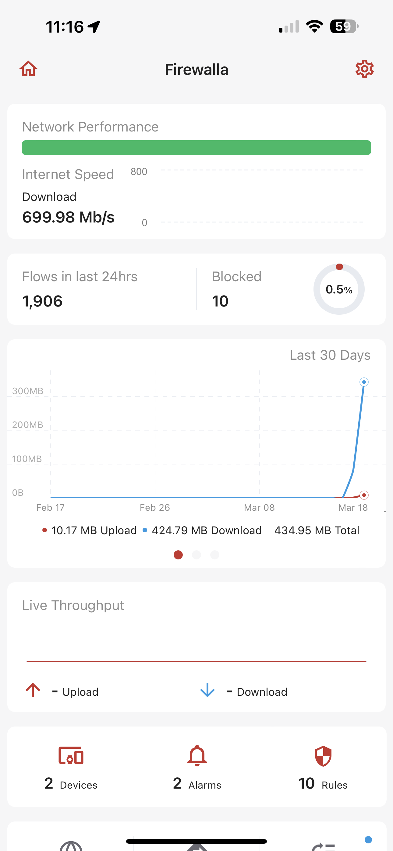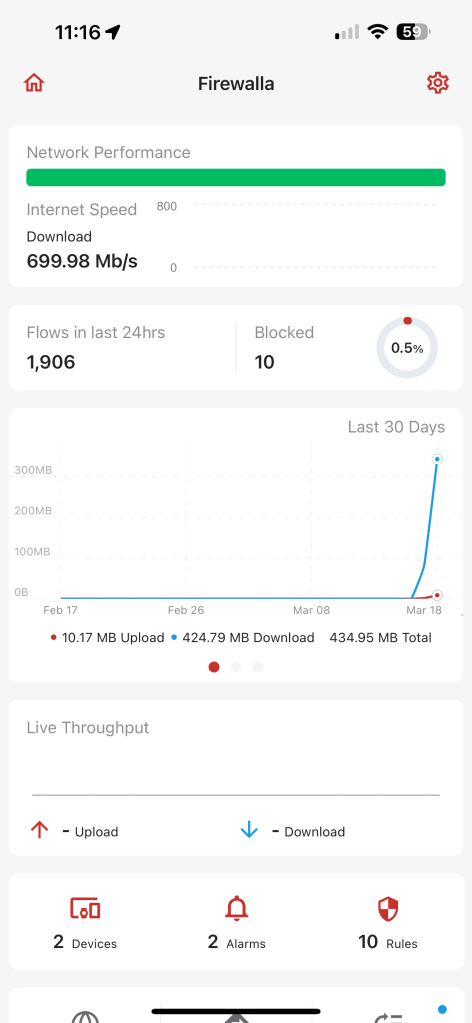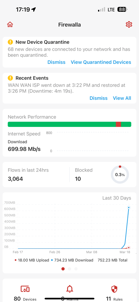 The Firewalla onboarding requires the use of a mobile app, and Bluetooth for discovery, and scanning a QR code on the device for authentication. Onboarding was very easy using the mobile app, but is unfortunately that the mobile app is the only way to configure the Firewalla. I understand product managers views of a mobile first world, but configuring a firewall is not like texting, and I would much prefer using web based configuration, where I can see and edit lots of information on a large screen using a keyboard. There is a web portal showing lots of information, but configuration is currently very limited. An MSP web interface is in the works, and I hope it would allow for more web based configurability.