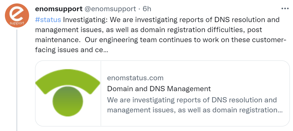 eNom really borked their datacenter move resulting in two days and counting of no DNS. I first noticed the issue Saturday (15 Jan 2022) night when my inbox remained clean for several hours, yes, I am one of those people that like to keep email organized and the inbox clean. A bit of head scratchingContinue reading “eNom Datacenter Move Borks DNS”